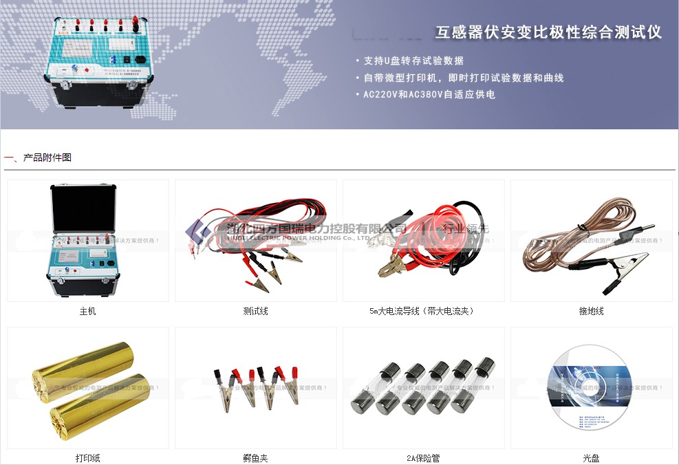 3 可選配件包括外接升壓器,外接升流器,外接調(diào)壓器,外接升壓器最高電壓可升至2000V,3A,外接升流器可升至1000A,外接調(diào)壓器最大輸出可達(dá)1500V,20A,采用外接升壓器時(shí),最高可做500KV等級1A電流互感器的伏安特性試驗(yàn)。